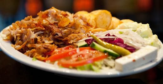 Shoarma met paprika en ui,champignons en kaas
